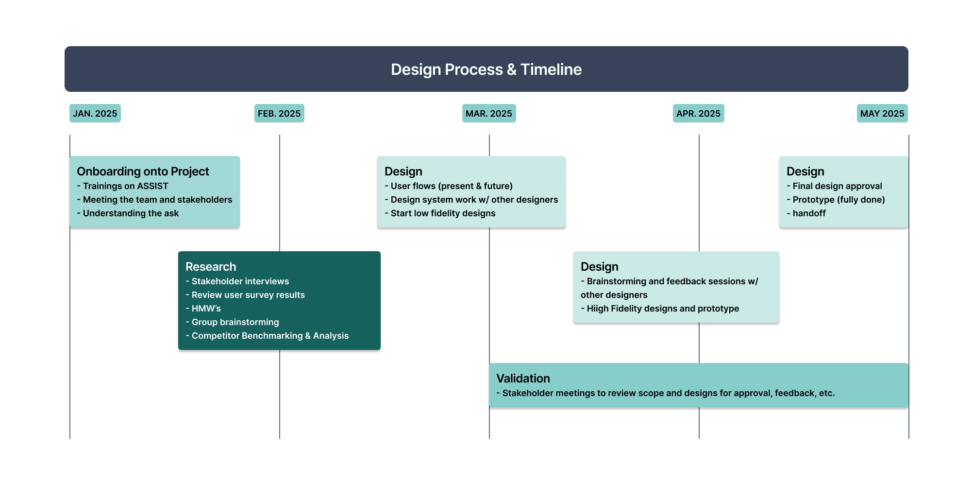 We began to move into different research - like user flows (current), competitive benchmarking to figure out how industry standards handle Help centers, and revisiting flows to see how we can update the user flows based on said benchmarking research.